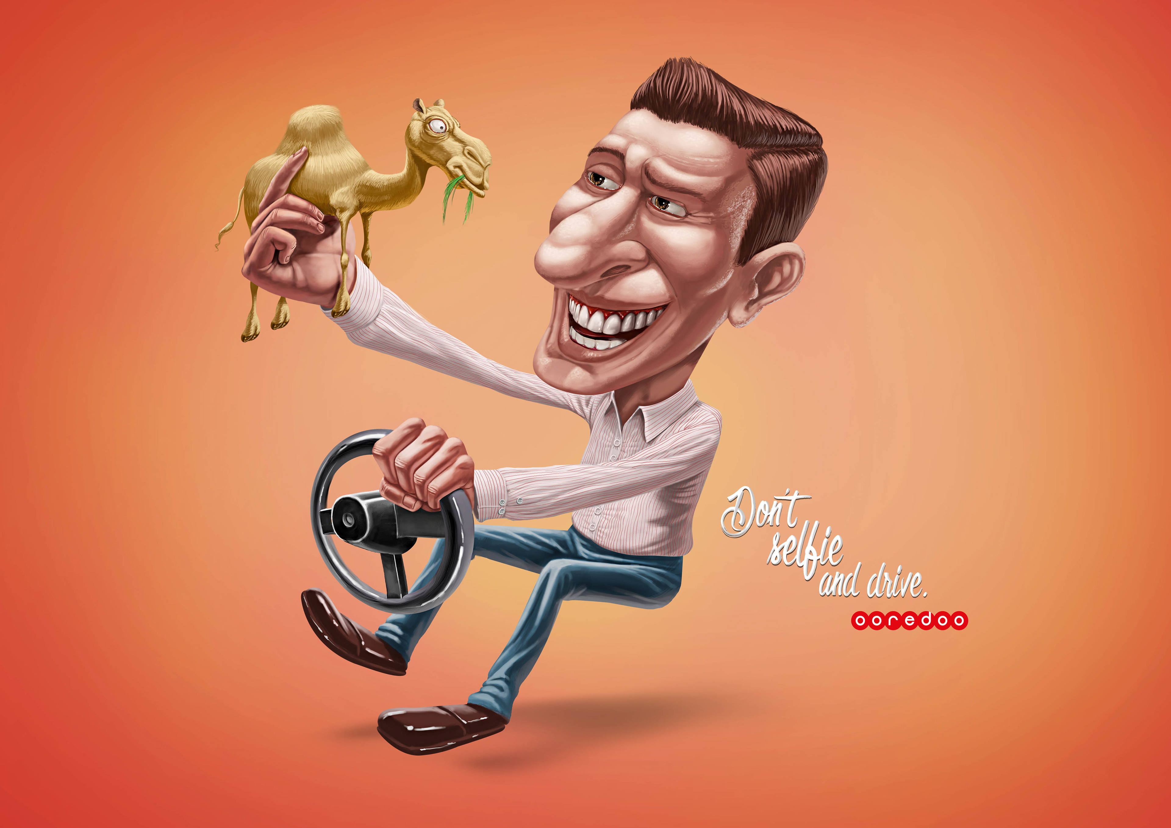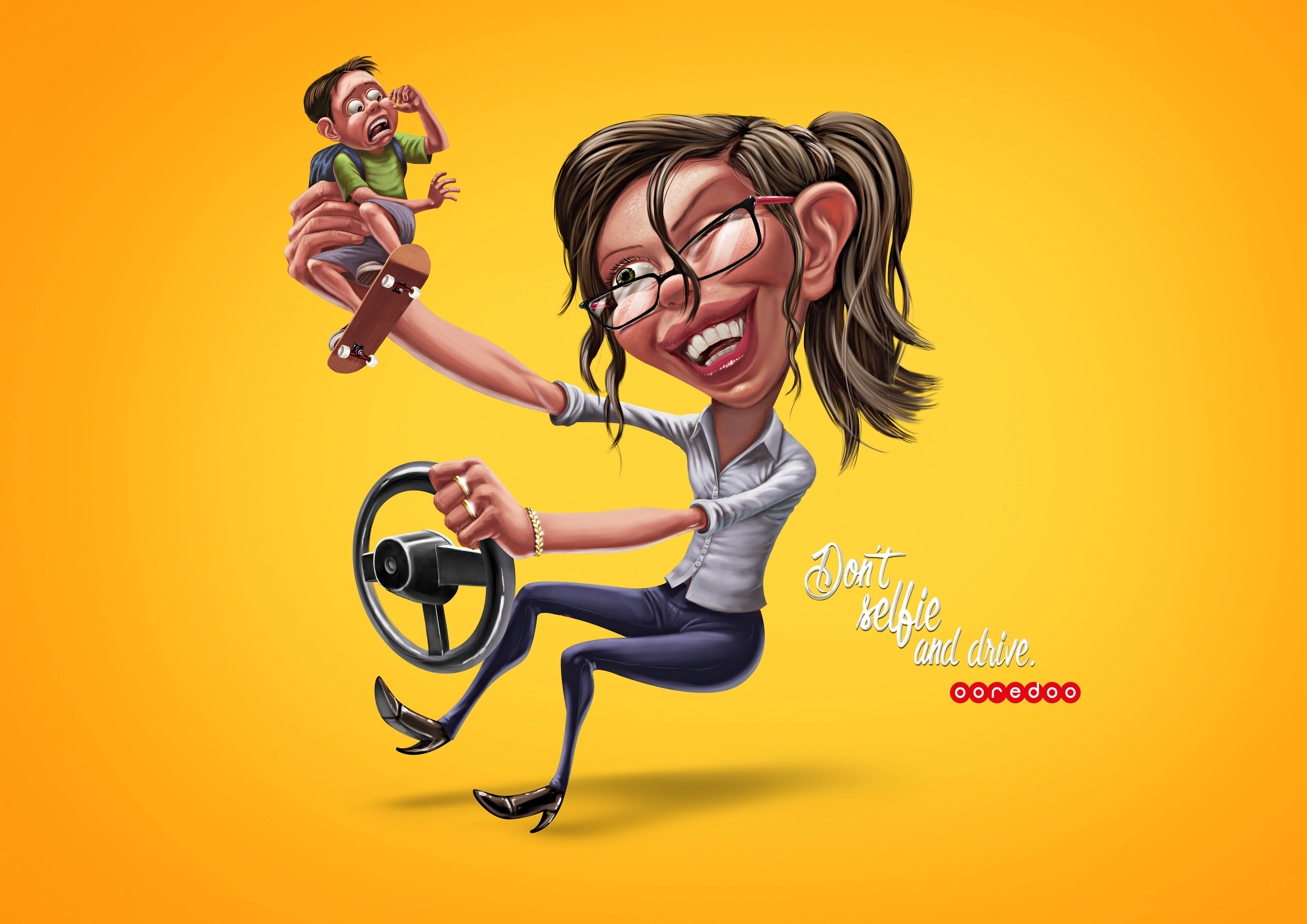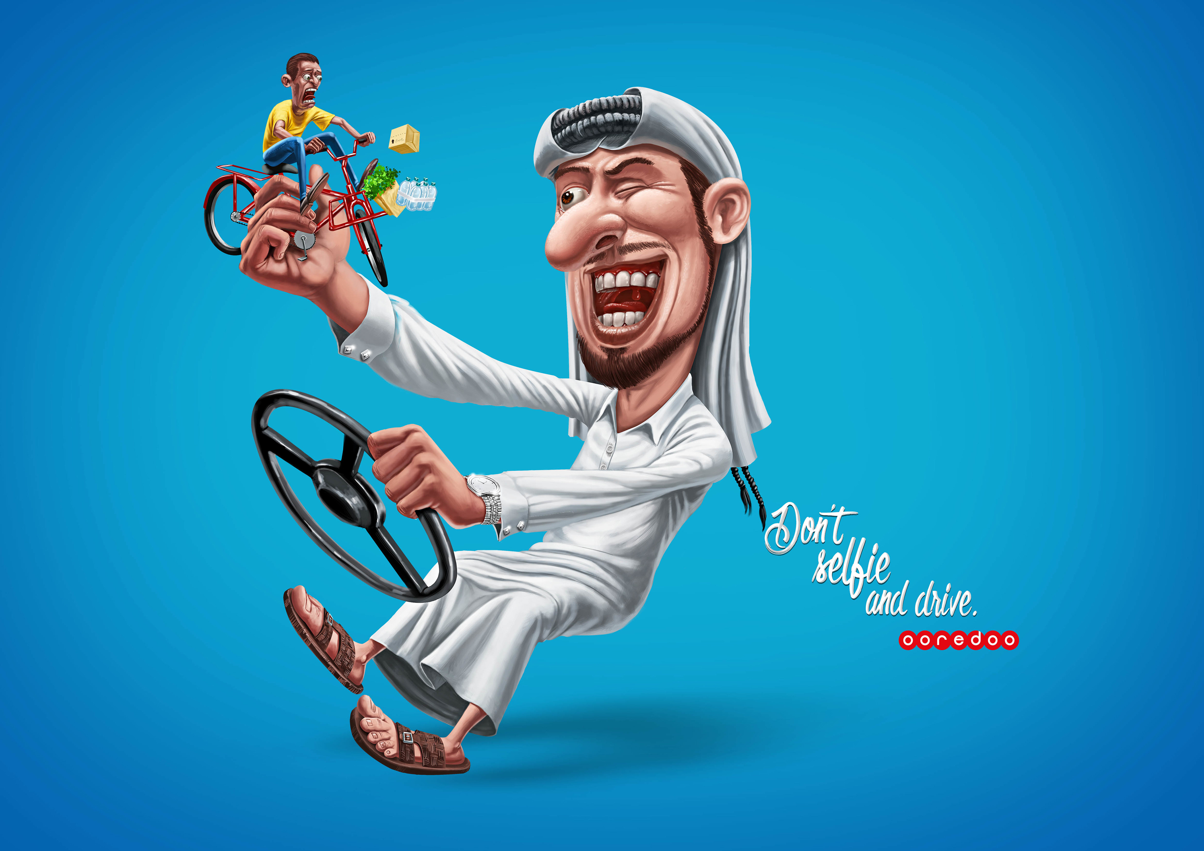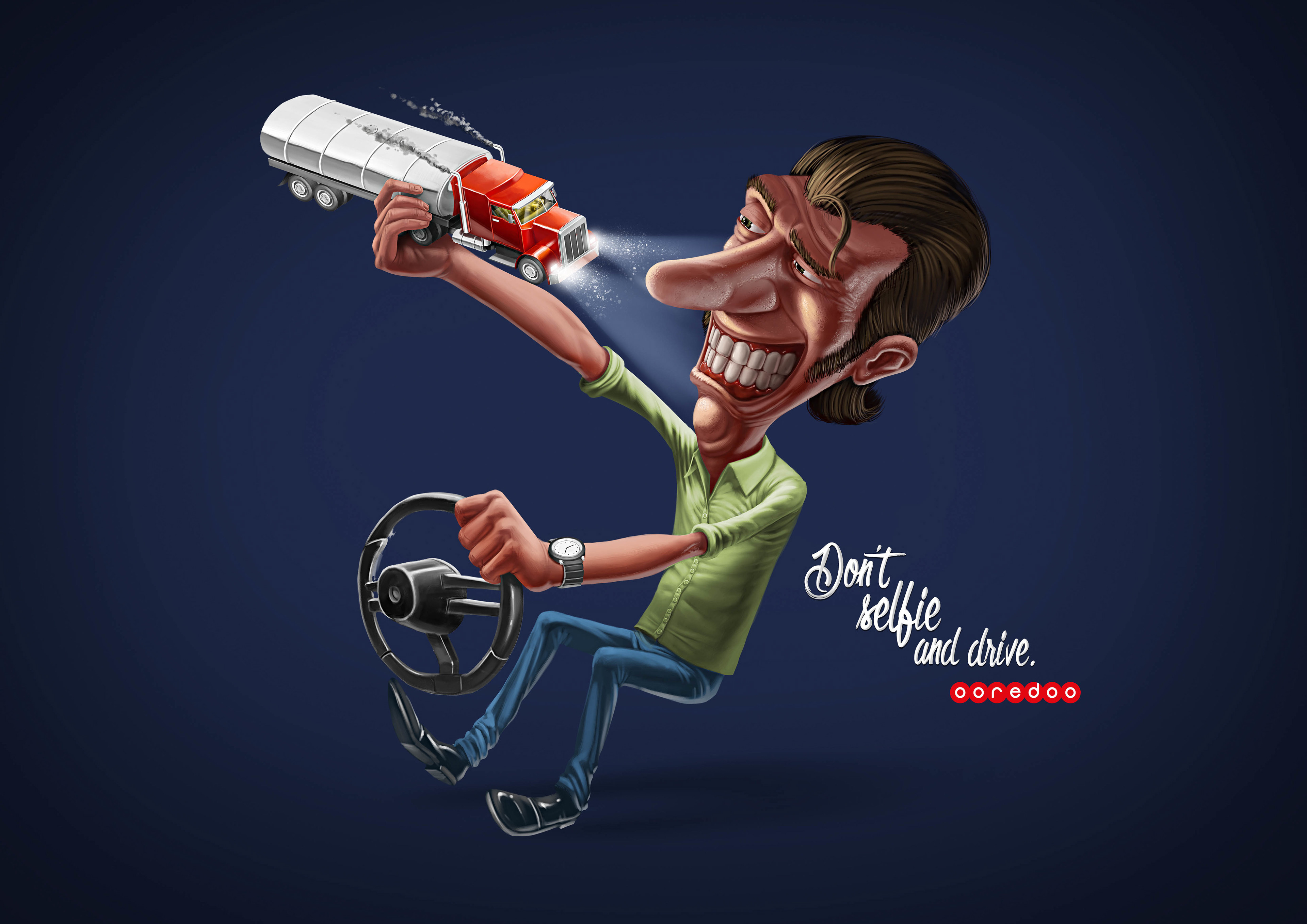 Illustrations for Ooredoo Qatar, in partnership with Leo Burnett Mena. Don't selfie and drive.