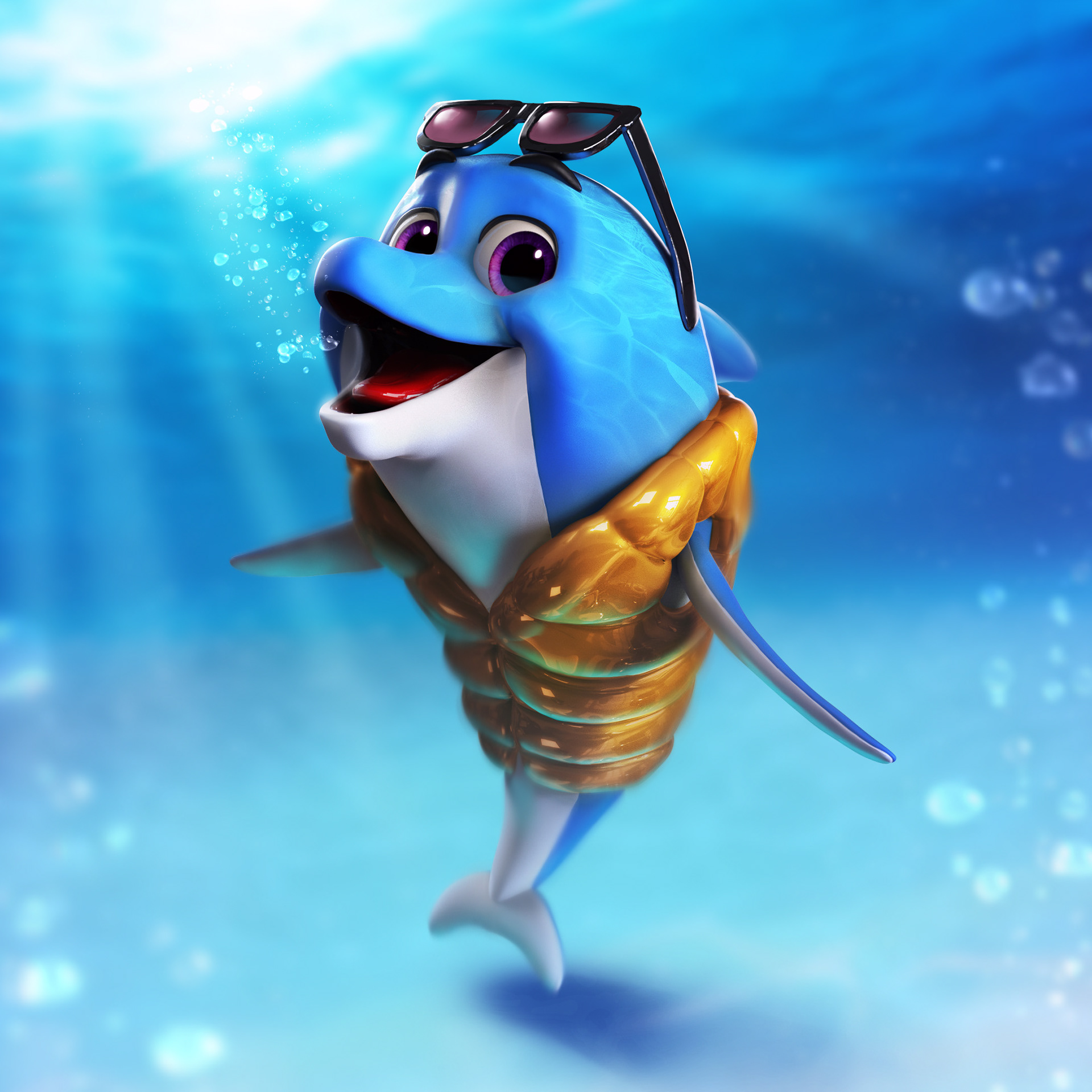 Esse é o Blue. Personagem criado para o Parque Aquático EcoBlue.